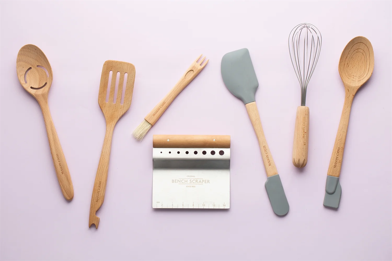 Pretože všetky suroviny je potrebné najskôr zmiešať a cesto následne premiestniť, bude vhodná dvojdielna sada veľkých stierok. Odolné špachtle zo silikónu v modrej a bielej farbe majú odnímateľné hlavice a sú vybavené dlhou rukoväťou z tvrdého buku. Nestratia sa ani pri roztieraní krému, tekutého karamelu alebo čokoládovej či cukrovej polevy. Multifunkčná je tiež mašlovačka z brezového dreva od Innovative Kitchen. Jednu stranu tvorí drevená vidlička na rozmiešanie vajíčka, na druhej strane je štetec na jeho rozotretie.