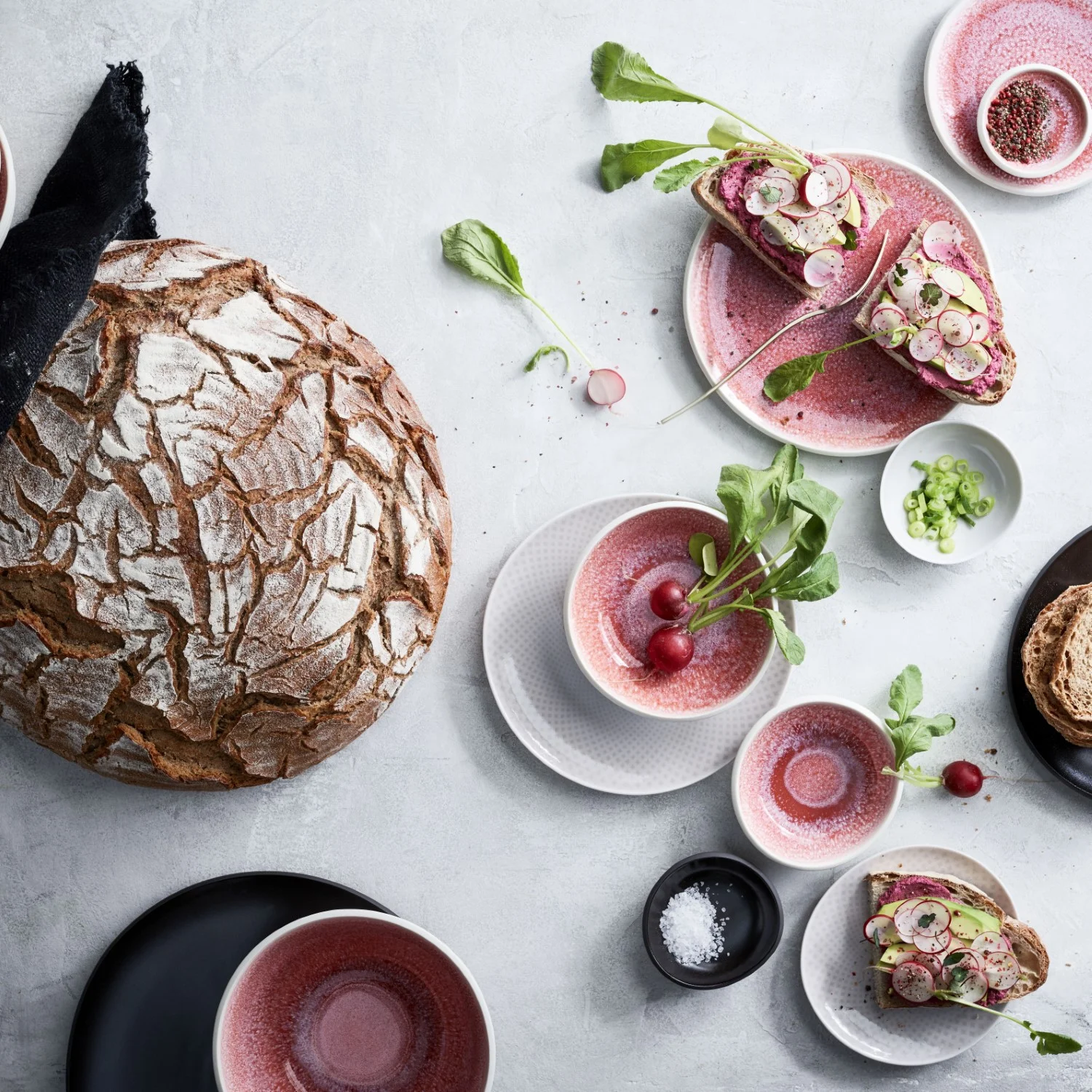 Kameninový servis Junto v stovke tónov ružovej, nazývaný Rose Quartz je nielen poctou polodrahokamu, ktorý po slovensky nazývame ruženín, ale tiež dokonalou ukážkou práce špičkových remeselníkov Rosenthal. Mix farieb vzniknutých vďaka tzv. reaktívnej glazúre aj nepravidelné tvary navodzujú pocit autentickej ručnej práce, špičkového handmade výrobku z malej rodinnej dielne, hoci to tak nie je. Nielen preto získala táto kolekcia v roku 2018 German Design Award a o rok neskôr aj cenu Dineus.