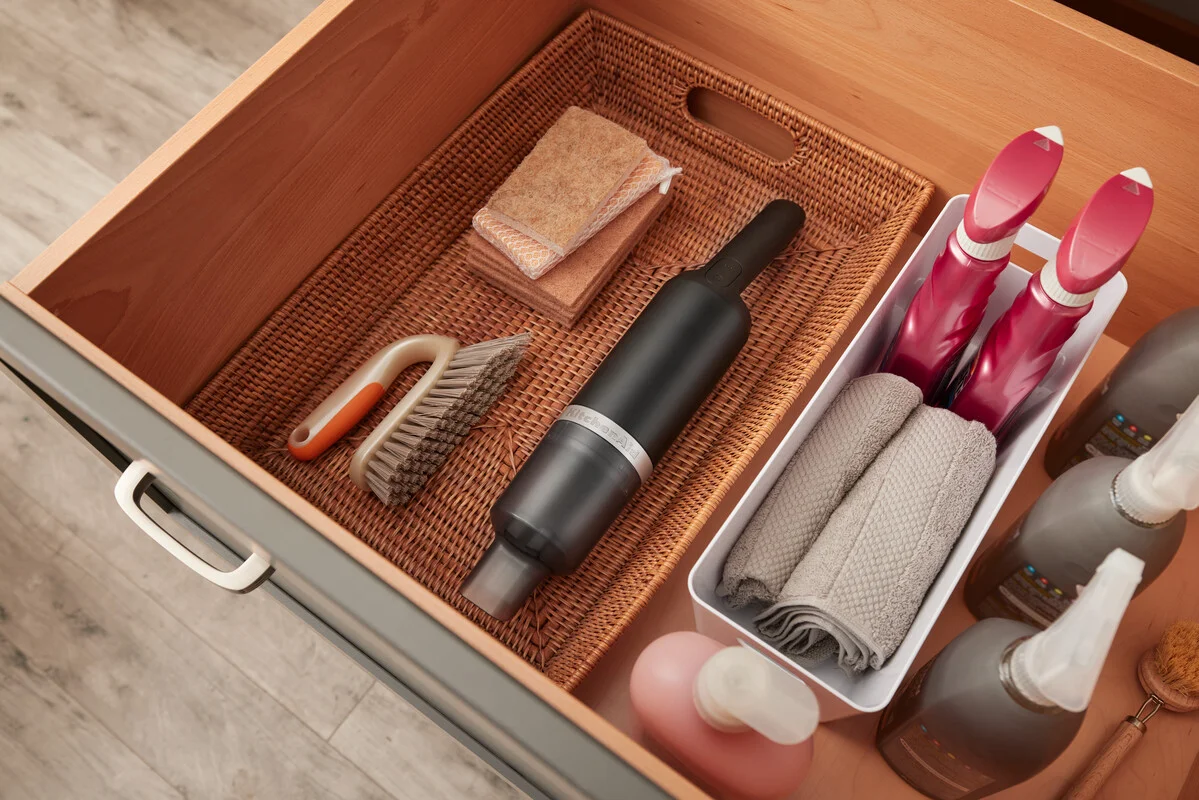 Malý, ale tichý a výkonný aku vysávač využijete nielen na rýchle vysatie odrobiniek či rozsypanej kávy na kuchynskom stole alebo linke, ale tiež na upratanie ťažko prístupných miest v byte. Vďaka prekvapivo veľkému saciemu výkonu 24 – 38 000 ot./min