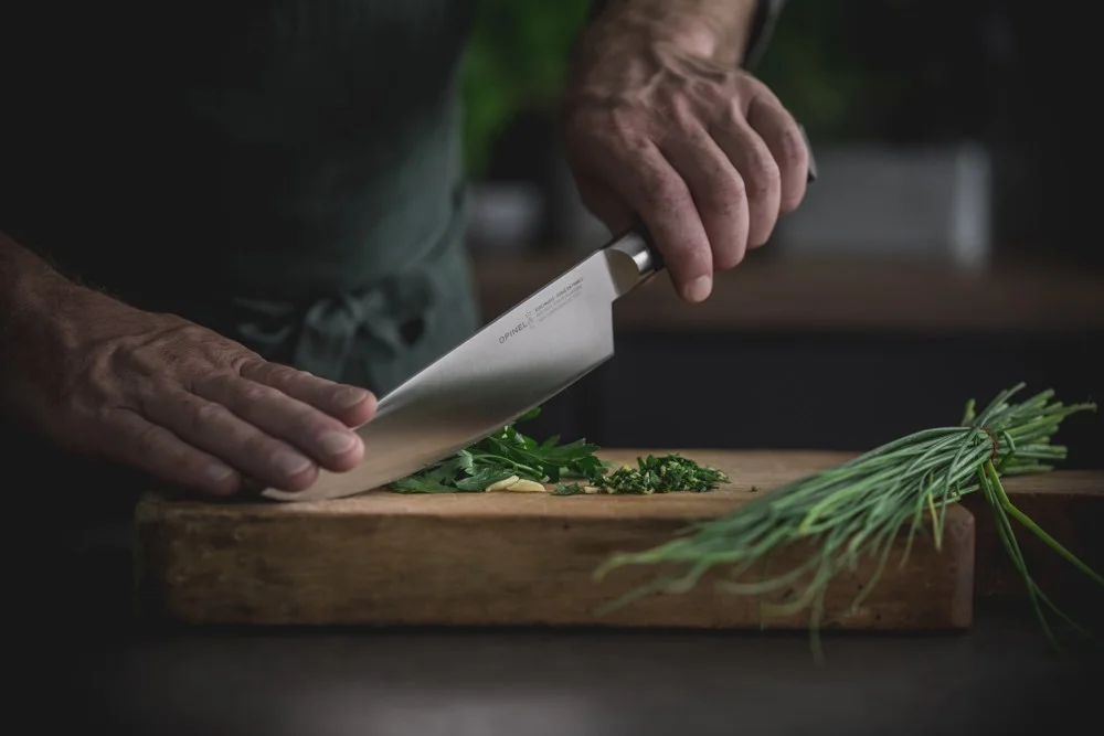 Excelentný kuchársky nôž Opinel z prémiovej kolekcie plne kovaných nožov. Full-tang čepeľ, rezná časť dlhá 20 cm, drevená rukoväť, upravená špeciálnym voskom. Precízny a vyvážený tvar s dôrazom na detail, kvalitné materiály, špičkové vyhotovenie = prémiový dizajn, odkazujúci na francúzsku kulinársku tradíciu.