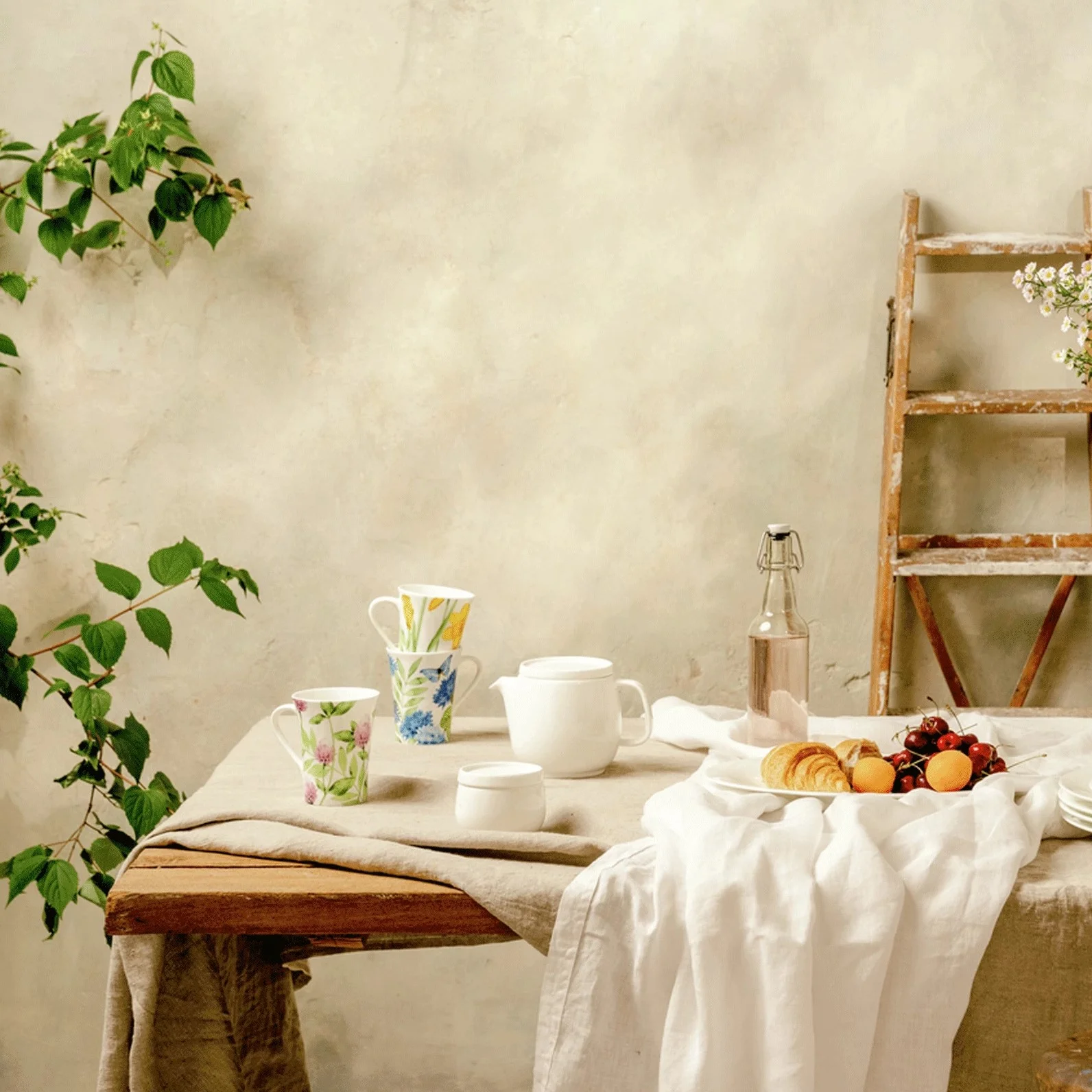 Darčeková kolekcia, v ktorej na hrnčekoch z bieleho glazovaného, jemne priesvitného, prémiového kostného porcelánu nájdete kresby v európskej prírode voľne rastúcich kvetín (ďatelina, divoký narcis, nevädza a na červeno kvitnúca veternica). Graficky rukopis je rovnaký, ako na tohtoročnej veľkonočnej kolekcii Jaro vo vzduchu, ktorú tak každý jeden hrnček pekne dopĺňa. Jednotlivé hrnčeky z kolekcie Nora Wild Flowers sú balené v darčekových papierových krabičkách.