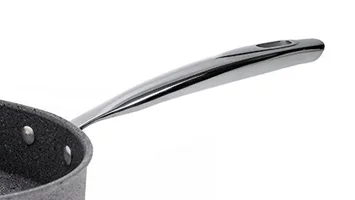 Má odolný nepriľnavý povrch Granitium v atraktívnom dizajne pripomínajúcom žulu, s ktorou sa môžete postaviť každej kulinársku výzve alebo len ohriať na večeru, čo zostalo od obeda, keď nemáte čas na náročnejšie varenie. Extrémne odolný nepriľnavý povrch je vystužený minerálnymi časticami a bez obáv tak môžete používať aj kovové náčinie.