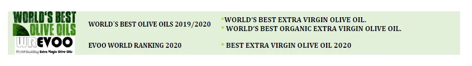 Španielsky extra panenský olivový olej v bio kvalite, držiteľ ocenenia The Best Extra Virgin Olive Oil in the Worl nepretržite 2015-2020,, lisovaný za studena z olív odrody hojiblanca, objem 500 ml, fľaša z tmavého skla.