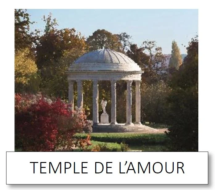 Parfum Temple de l´amour kombinuje kvetinové, drevité tóny spoločne s vôňou ruží a pižma. Cédrové drevo, frézia, konvalinka a puky ruží pripomínajú rafinovanosť výzdoby kupoly, zatiaľ čo tóny bergamotu, liči a broskyne evokujú atmosféru anglo-čínskej záhrady, ktorú si priala Marie Antoinetta.