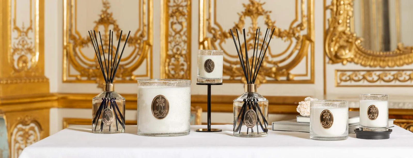 Exkluzívne vonné sviečky a tyčinkové difuzéry s licenciou zámku Chateau de Versailles rovnako nazývanej francúzskej značky boli inšpirované atmosférou paláca Versailles, sídlom francúzskych kráľov, kde si ich môžete aj zakúpiť. Ide o radu jedinečných vonných sviečok a difuzérov inšpirovaných dvorom Kráľa Slnka. Veľkolepá kolekcia vyrobená pre zámok Chateau de Versailles v sebe spája históriu zámku a jeho špecifické vône. Sviečky aj difuzéry sú tak skvelou voľbou pre okúzľujúce chvíle a pre ich design aj špeciálnym darčekom. Do Francúzska je cesta ďaleká a my vám tak ponúkame tieto luxusné vône na privoňanie a nákup v našej designovej predajni Atelier na Prahe 1.