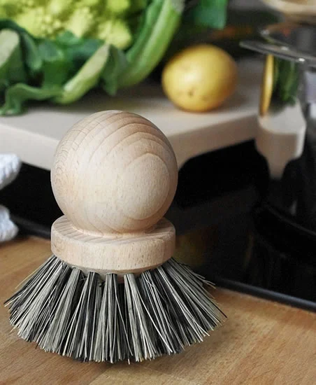 Ručne vyrobená kefka má vlákna z tvrdých, ale neabrazívnych prírodných vlákien (tampico a bassin). Je ideálna na čištenie aj odolných nečistôt bez poškrabania riadu.