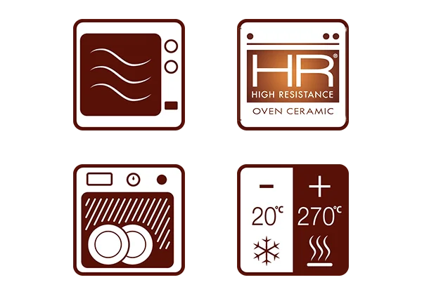 Riad z kolekcie High Resistance® je vysoko odolný voči nárazu alebo poškriabaniu. Odoláva aj teplotným šokom – po vybratí z mrazničky ho môžete rovno vložiť do vyhriatej rúry, keramika vám nepopraská. Riad z keramiky HR je možné použiť na ohrev v mikrovlnnej rúre či umývať v umývačke riadu. Nie je určený na používanie na zdrojoch priameho tepla.