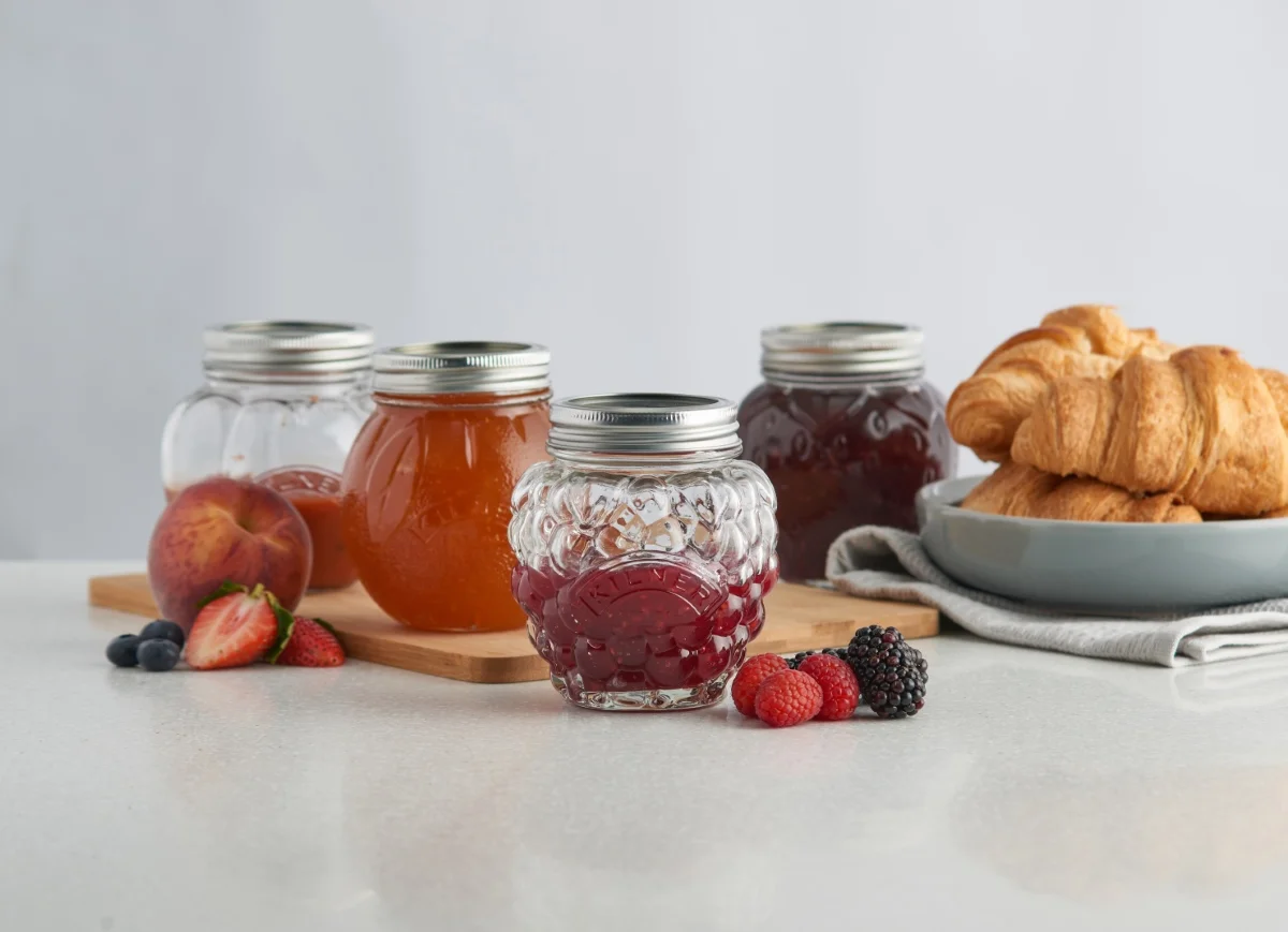 Hravé zaváracie poháre v tvare jahody, černice či maliny, pomaranča alebo paradajky ocení každý, koho baví zavárať a rád dáva svoje produkty ako darček. Poháre kopírujú nielen tvar, ale čiastočne aj štruktúru daného plodu. Zaváracie poháre z tvrdeného priehľadného skla s kovovým vrchnákom, ktorý má vymeniteľné vákuové tesnenie, je možné využiť aj na priame servírovanie.