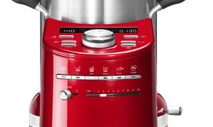 Varný robot Artisan 5KCF0104 z prestížnej dielne spoločnosti KitchenAid. Seká, melie, mixuje, mieša, šľahá, naparuje, varí, dusí a smaží. Výkonný, praktický a moderný.Varný spotrebič, ktorý disponuje celou radou štandardného príslušenstva a rôznymi teplotami varenia (40–140 °C).