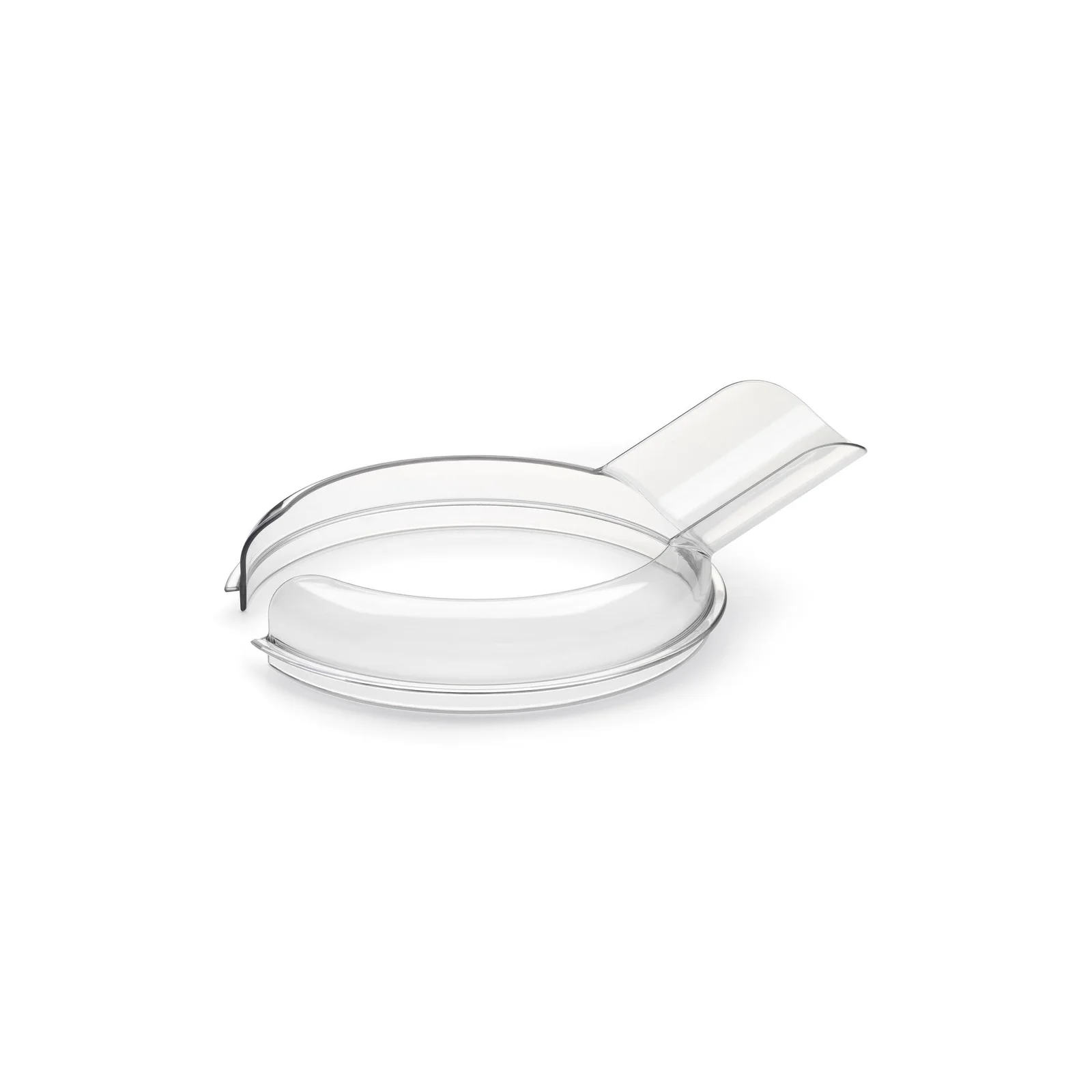 Plastový štít zaručí, že pri práci prístroja vo vyšších rýchlostiach ostanú suroviny tam, kde majú byť, teda v mise. Žliabok umožňuje rovnomerné pridávanie prísad počas miešania. Vyrobený je z priehľadného plastu, ktorému nesvedčí umývanie v umývačke riadu.