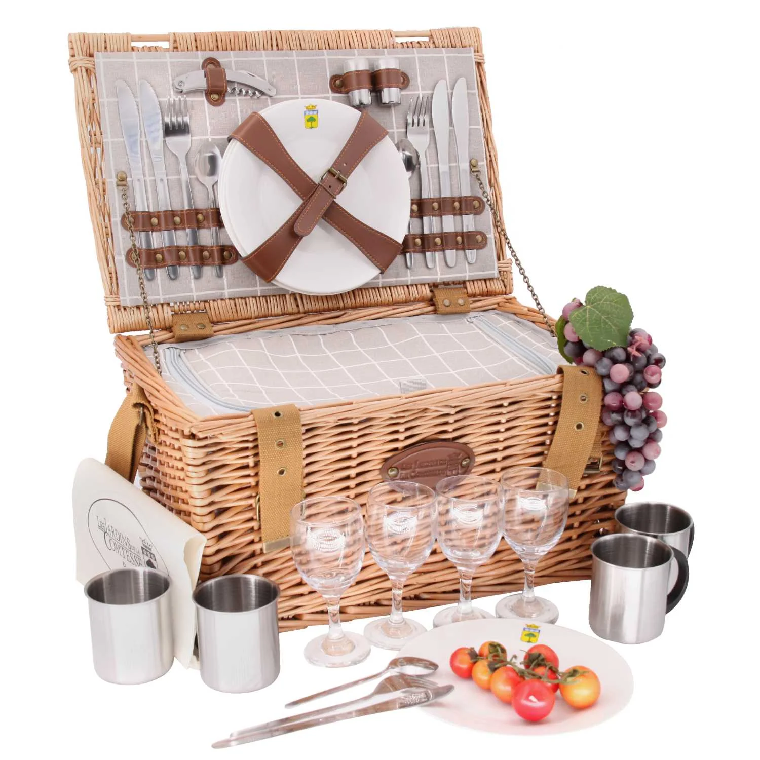 Súčasťou koša je kompletná sada riadu pre 4 osoby – keramické taniere, poháre, príbory a ďalšie nevyhnutnosti, ktoré oceníte pri každom pikniku. Všetky časti vybavenia je možné umývať v umývačke riadu, čo vám uľahčí upratovanie po návrate domov.