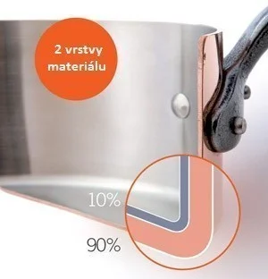 - vonkajšia vrstva: meď 1,5 mm (leštená do vysokého lesku)