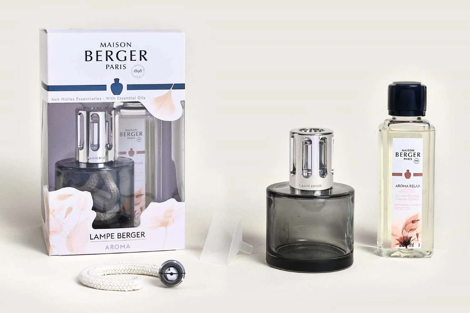 Aroma je ideálna pre jednoduchý úvod do sveta interiérových parfumov a katalytickým lámp vychýrenej francúzskej značky Maison Berger Paris. Obsahuje totiž jednak katalytickú lampu Aroma, tak aj 250 ml interiérového parfumu Aroma Relax – Sladký orient. Súčasťou balenia je tiež patentovaný kahan s bavlneným knôtom, plastový plniaci lievik, zhášadlo na plameň, uzáver lampy a robustná ochranná korunka.