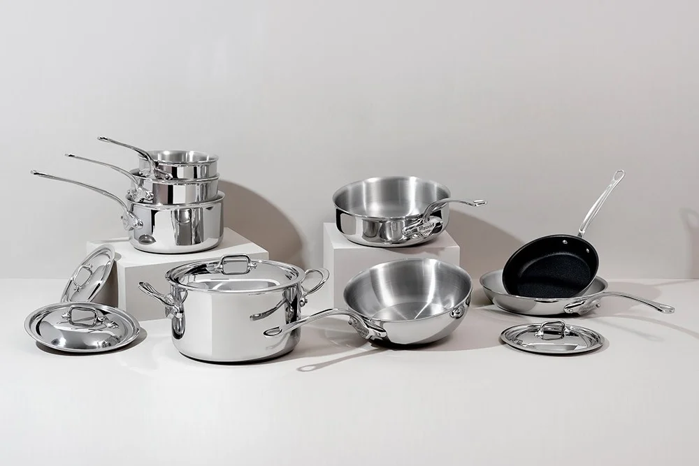 Kolekcia M'Cook od francúzskej značky Mauviel je synonymom vysokej kvality, precízneho spracovania a inovatívnej technológie. Tento jedinečný riad s 5-vrstvovou konštrukciou bol navrhnutý špeciálne pre indukčné varenie. Kombinácia nerezovej ocele, troch vrstiev hliníka a magnetickej nerezovej ocele zaručuje dokonalú tepelnú vodivosť a rovnomerné rozloženie tepla, čo vedie k efektívnemu vareniu, šetrí čas aj energiu. Kolekcia M'Cook je ideálnou voľbou pre domácich aj profesionálnych kuchárov, ktorí požadujú vysoký výkon, dlhú životnosť a elegantný dizajn.