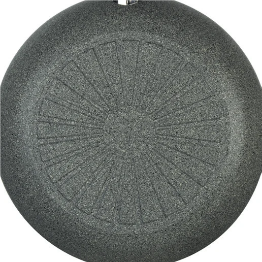 Tmavý nepriľnavý povrch Granitum sa skláda zo 4 vrstiev, je odolný voči vysokým teplotám, dobre sa udržiava a je odolný voči kovovému náčiniu.