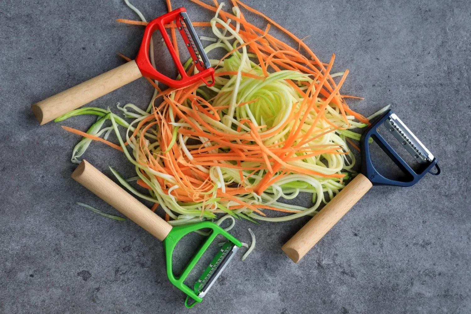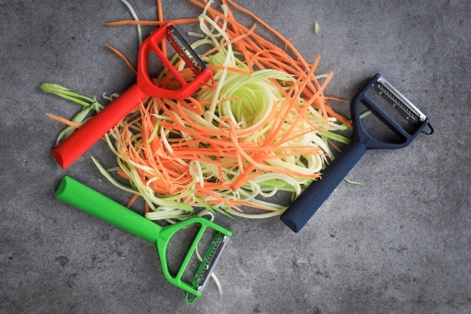 - rovná čepeľ na tvorbu tenkých zeleninových "špaget" – julienne rezancov z mäkkej zeleniny (cuketa, uhorka) rovnako dobre ako z tej tvrdej (batáty, červená repa)