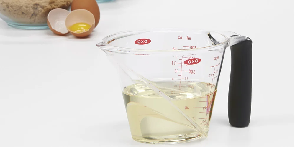 Pri pečení platí, že presnosť je dôležitá, záleží na každom grame a mililitri. S praktickou odmerkou s objemom 1000 ml z kolekcie Good Grips od OXO môžete využiť nielen klasickú vertikálnu rysku umiestnenú na boku nádoby, ale predovšetkým patentovanú vnútornú šikmú mernú rysku. Nemusíte sa ohýbať k odmerke, alebo ju zdvíhať k svojim očiam, ryska je dobre čitateľná zhora. Odmerka zobrazuje hodnoty v ml, oz aj cups.