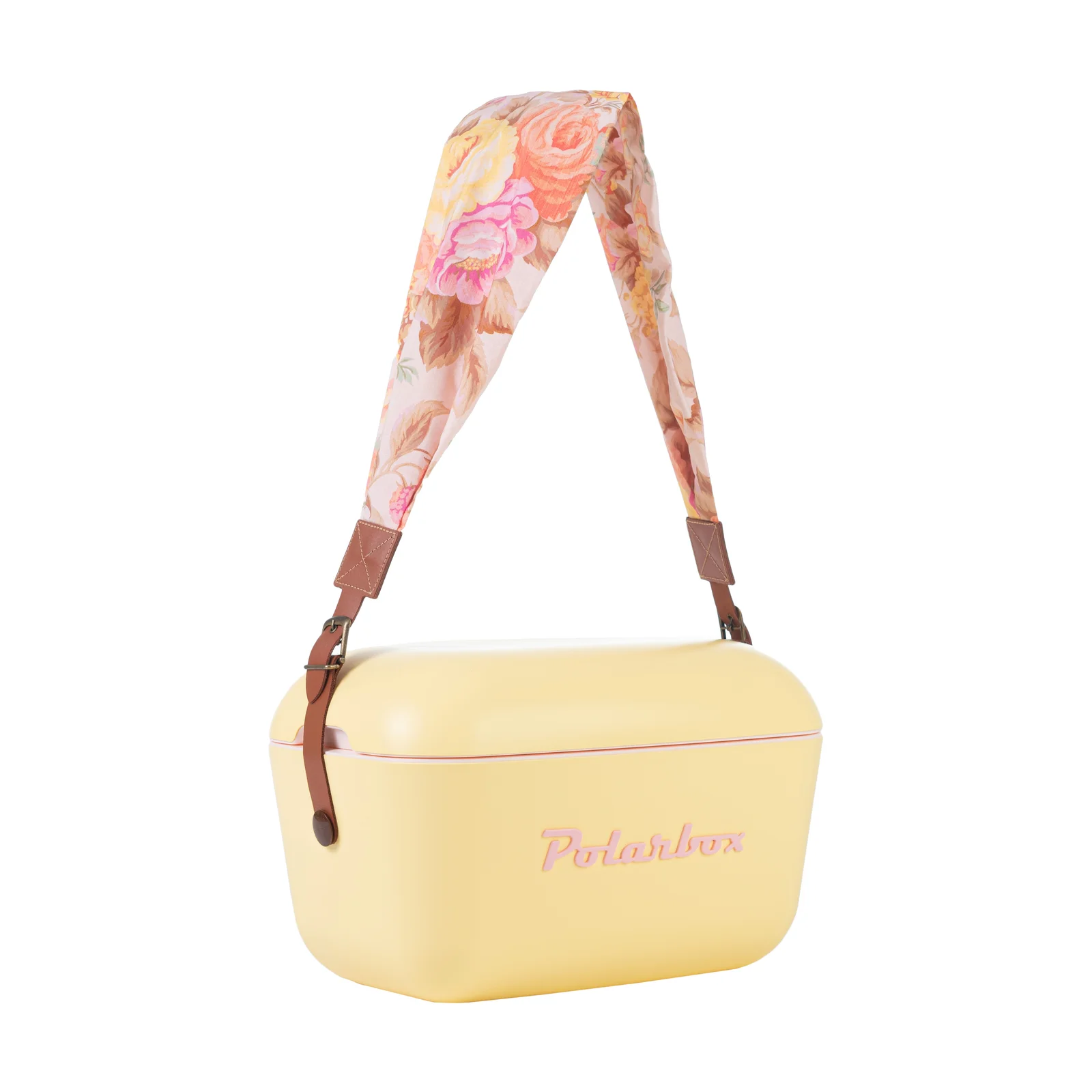 Pri svojom Polarboxe si môžete nastaviteľný remeň vymeniť za latkový popruh, ktorý je príjemný na nosenie cez rameno, najmä ak preferujete holý chrbát. Môžete si vybrať z niekoľkých dezénov – patchwork, batika, animal (zvieracie labky), geometrický, retro alebo kvetinový vzor. Upínacie remienky pri variante Classic sú vždy z pravej kože v prírodnej farbe. Popruh je kompatibilný s oboma veľkosťami týchto retro chladiacich boxov, jednak s malým s objemom 12 litrov, tak aj s veľkým 20-litrovým, vzhľadom k materiálu a farbe upínacích praciek predovšetkým s typom Polarbox Classic.