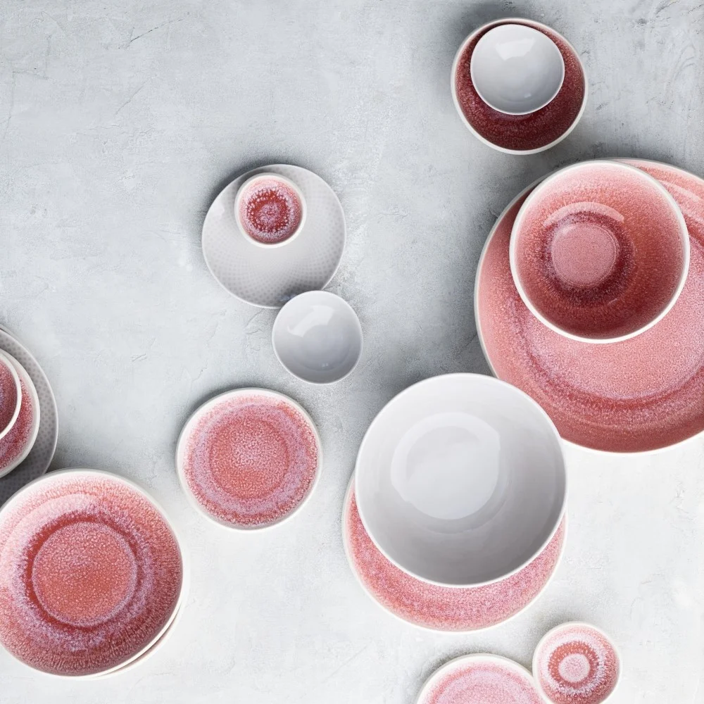 Kameninový servis Junto v stovke tónov ružovej, nazývaný Rose Quartz je nielen poctou polodrahokamu, ktorý po slovensky nazývame ruženín, ale tiež dokonalou ukážkou práce špičkových remeselníkov Rosenthal. Mix farieb vzniknutých vďaka tzv. reaktívnej glazúre aj nepravidelné tvary navodzujú pocit autentickej ručnej práce, špičkového handmade výrobku z malej rodinnej dielne, hoci to tak nie je. Nielen preto získala táto kolekcia v roku 2018 German Design Award a o rok neskôr aj cenu Dineus.