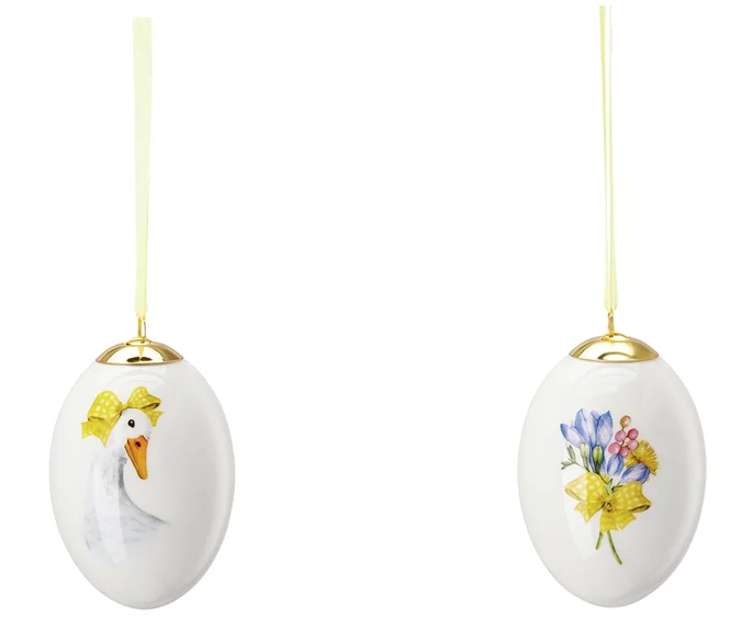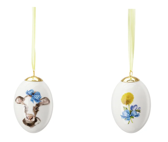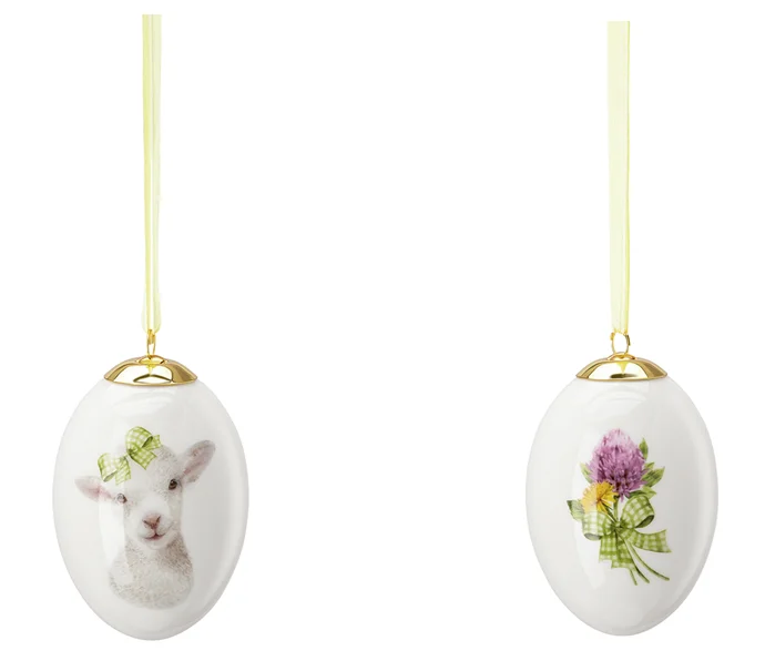 Zberateľská edícia v limitovanom počte 1 500 kusov. Dekorácia v podobe 3 porcelánových kraslíc z veľkonočnej kolekcie Rosenthal Hutchenreuther 2023, s vyobrazením húsatka, jahniatka a teliatka s veľkonočnými mašľami na jednej strane a jarnými kvetmi na strane druhej. Balené v krabičke.
