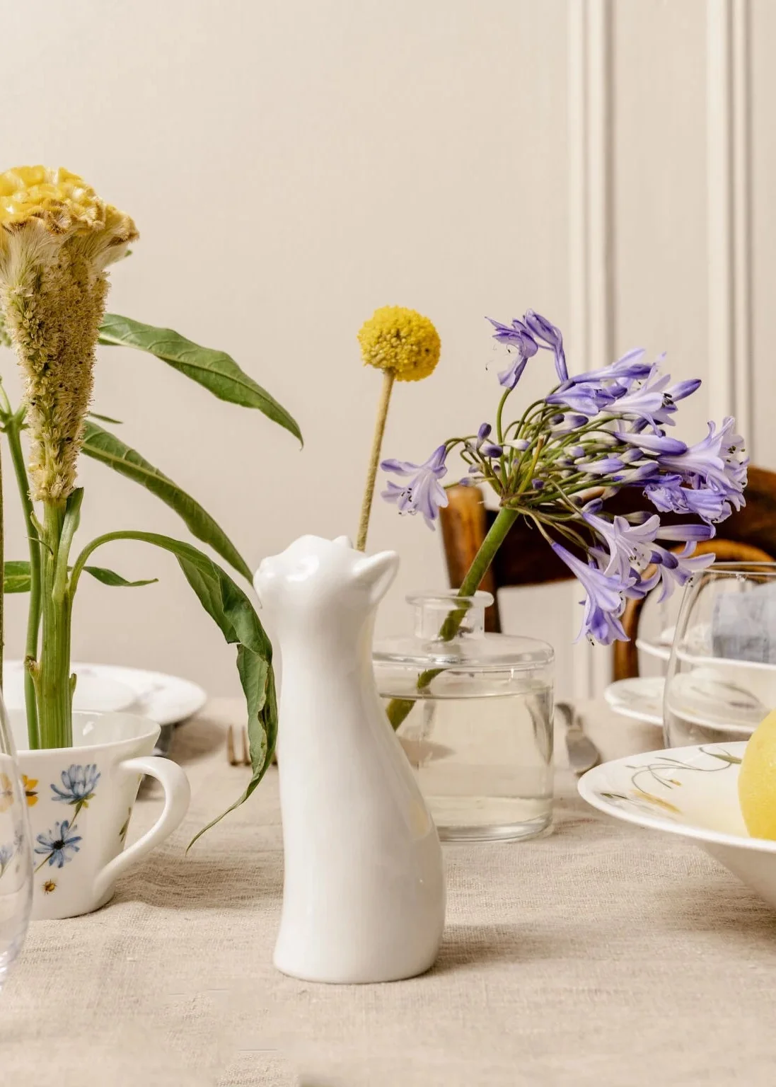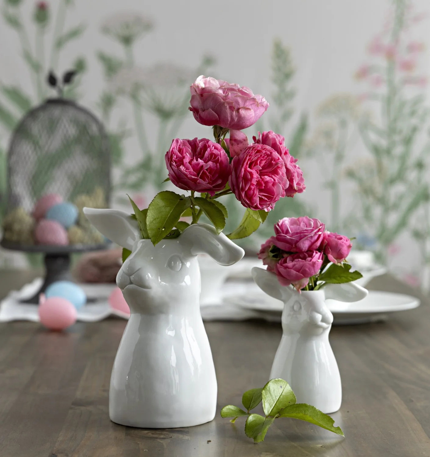 Realisticky vyvedené, avšak súčasne štýlovo veľmi jednoduché porcelánové vázy, z ktorých prinajmenšom dve humorným spôsobom evokujú jarný a veľkonočný čas. Ich snehovo biela farba len zvýrazní veselé a žiarivé farby jarných kvetov a pučiacich vetvičiek, ktoré do nich umiestníte, bez toho, aby tlmili ich kúzlo. Vtipné prevedenie každej z váz osvieži akýkoľvek interiér sám o sebe. Vázy v tvare zajačej alebo husej hlavy či sediacej mačky sú k dispozícii v dvoch prevedeniach, ktoré sa líšia len výškou.