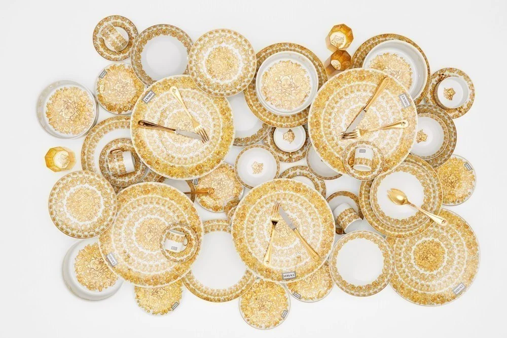 Jemná a množstvom zlata decentná kolekcia prináša dotyk nezameniteľného Versaceho kdekoľvek sa ocitne. Pozoruhodne moderná rapsódia farieb a detailov čerpala inšpiráciu zo vzorov látok Versace a, samozrejme, využila aj ikonickú hlavu Medúzy. Hlava bájnej Medúzy a barokové kvety, ktoré tvoria ústredný motív celej tejto noblesnej kolekcie, sú vyvedené v bohatých zlatých odtieňoch, perfektne rezonujúcich na snehobielom prémiovom porceláne. Vybrané kľúčové prvky kolekcie (niektoré zo zdobených tanierov alebo hrnčeky na kávu) majú na sebe vintage logo Versace 90. rokov. Kolekcia prémiového porcelánu sa skladá z jedálenskej súpravy, kávových a čajových súprav a predmetov home dekor, ako sú vázy, svietniky, dekoratívne misy alebo rámčeky na fotografie.