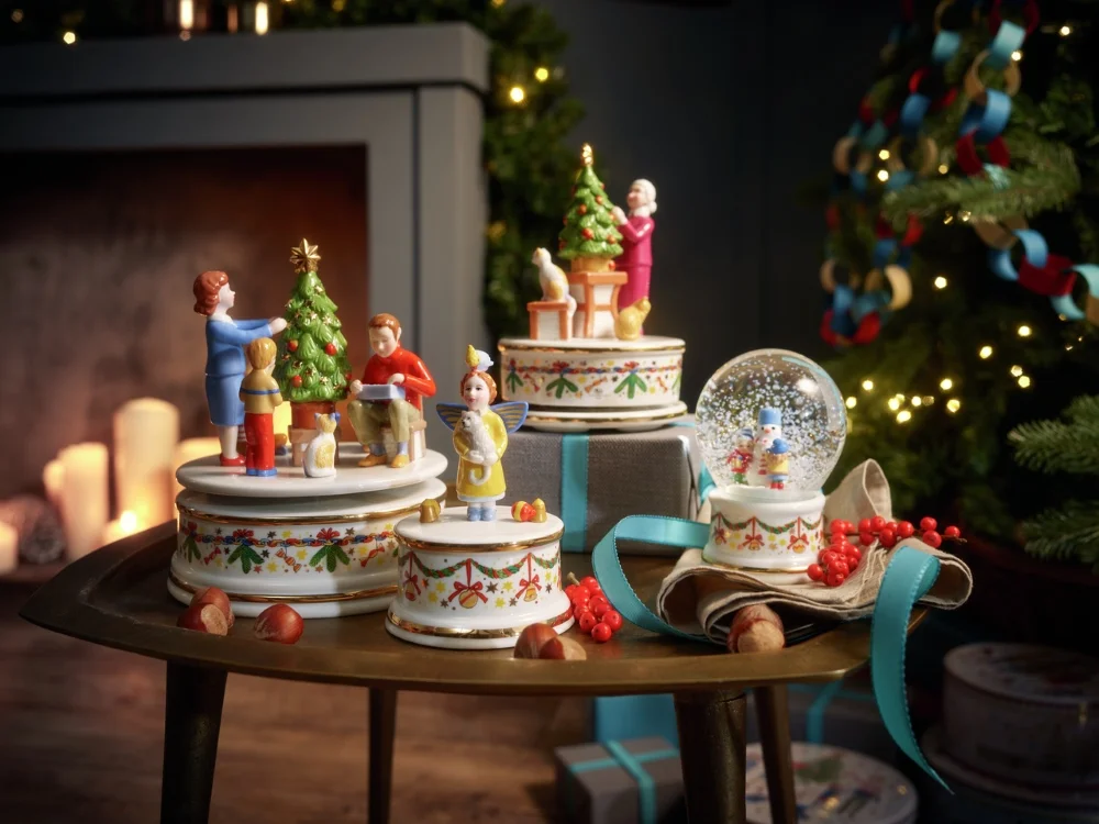 Osvedčená kombinácia snehovobielej farby porcelánu s modrou, červenou a zlatou je v prípade vianočných kolekcií porcelánu Rosenthal už klasikou. Tohto roku je farebná paleta žánrových obrázkov, vytvorených Renátou Fučíkovou, doplnená o žltú, evokujúcu záplavu svetla z vianočných elektrických žiaroviek, ktoré v 70. rokoch minulého storočia, zaplavili svet. Viac si o kolekcii môžete prečítať tu.