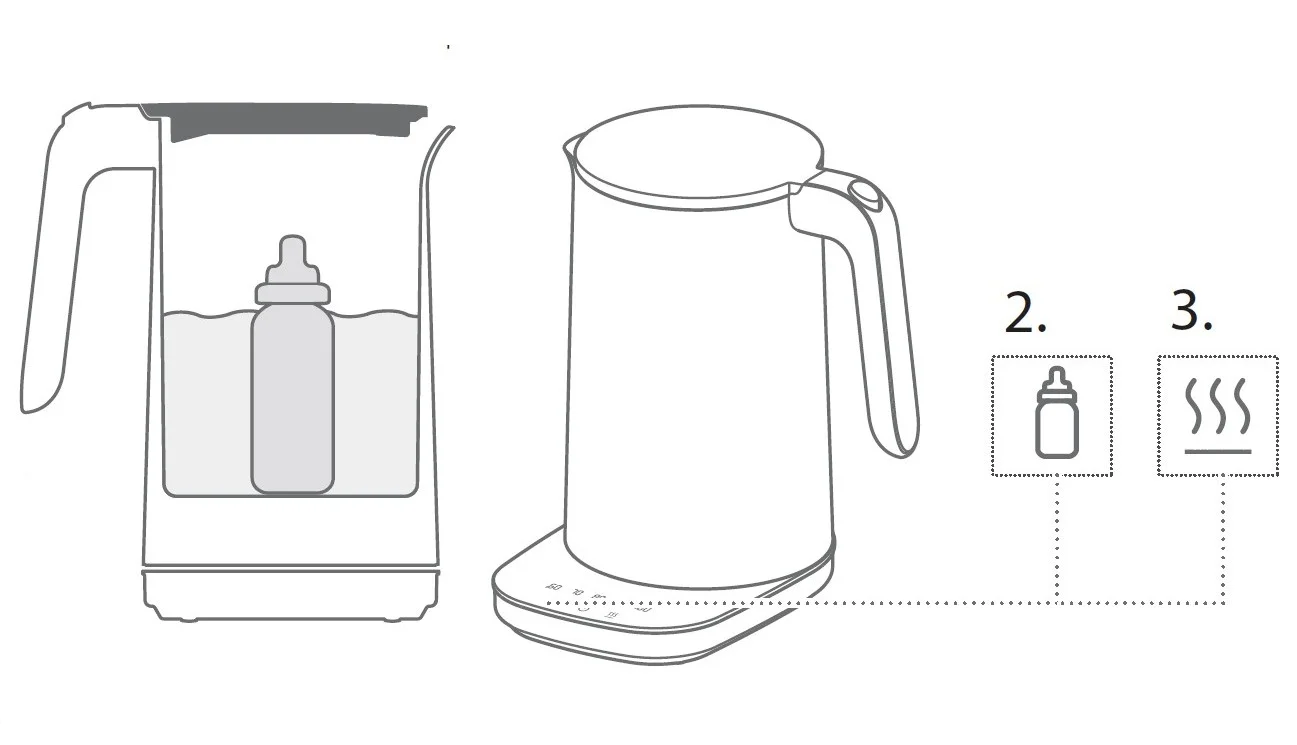 - pri udržaní teploty na 100 ° C umožňuje sterilizáciu fliaš na dojčenské mlieko