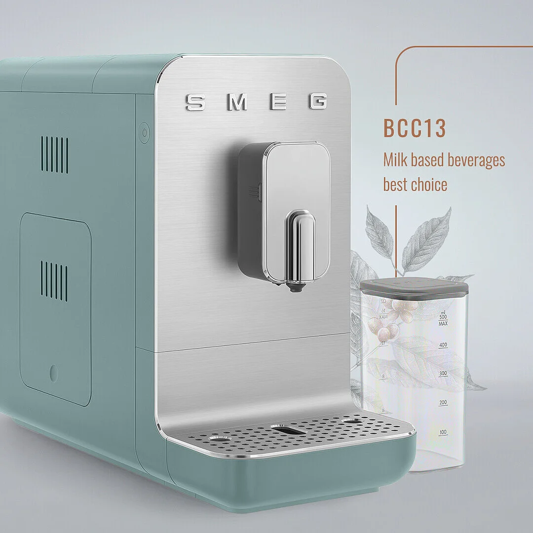 Automatický kávovar Smeg BCC13 má 10 funkcií, 8 na prípravu rôznych druhov kávy, 1 pre horúcu vodu a 1 pre mliečnú penu. Pre ich podrobný popis sa pozrite do priloženej užívateľskej príručky pre tento typ kávovaru.