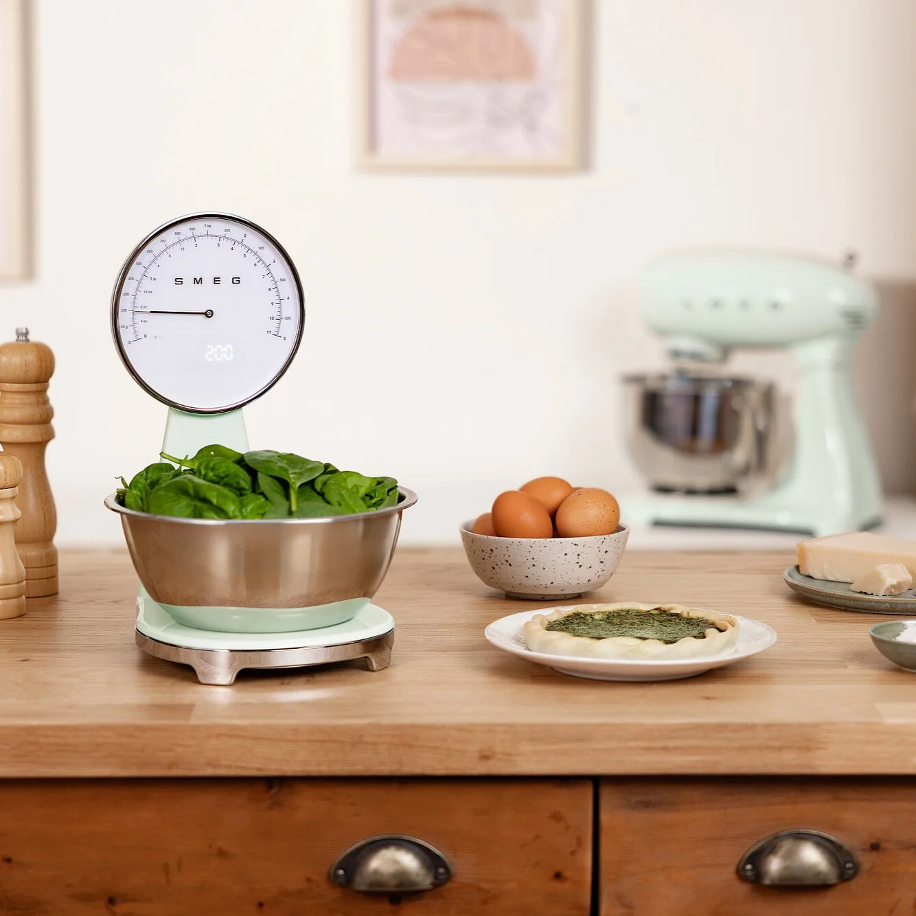 Kuchynská váha Smeg s duálnym režimom – analógovým a digitálnym – je prvým krokom k riešeniu akejkoľvek kuchynskej výzvy. Kompaktná a všestranná, kombinuje potešenie z dizajnu s vášňou pre varenie.