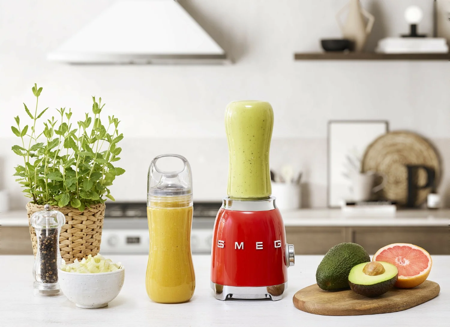 Smoothie maker – malý stolový smoothie mixér Smeg vám vďaka milému a jemnému retro dizajnu v hravom štýle 50. rokov nielenže spríjemní každú chvíľku, čo s ním strávite, ale tiež odvedie skutočne perfektnú prácu. Konzumácia ovocia, zeleniny a ďalších zdraviu prospešných potravín sa pre vás vďaka nemu stane príjemným denným zvykom a navyše, tento prístroj skrášli každú miestnosť, kam ho umiestníte. Skrátka ako SMEG.