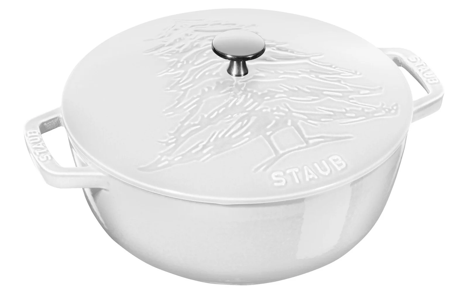 Pre kolekciu French oven je charakteristický plastický dekor na pokrievke, vynikne tak farebnosť smaltovaného povrchu. Potešte svojich hostí nielen lahodným jedlom, ale aj francúzskou estetikou tohto výnimočného riadu a servírujte z neho priamo na sviatočne prestretom stole. Dekorácia v podobe vianočného stromčeka k tomu priamo nabáda.