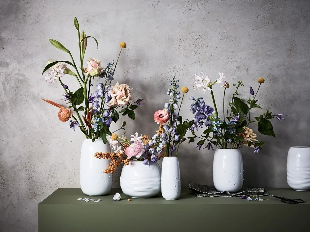 Rafinovane jednoduché porcelánové vázy v severskom štýle z kolekcie Vesi sú predstavené v dvoch dizajnoch: Droplet a Wavelet. Slová vesi, droplets a wavelet vo fínčine znamenajú voda, kvapôčka a vlnka, čo samo o sebe vypovedá o dizajnerovej inšpirácii. Efekt, spôsobený lomom svetla, pridáva vázam nádherne poetický prvok.