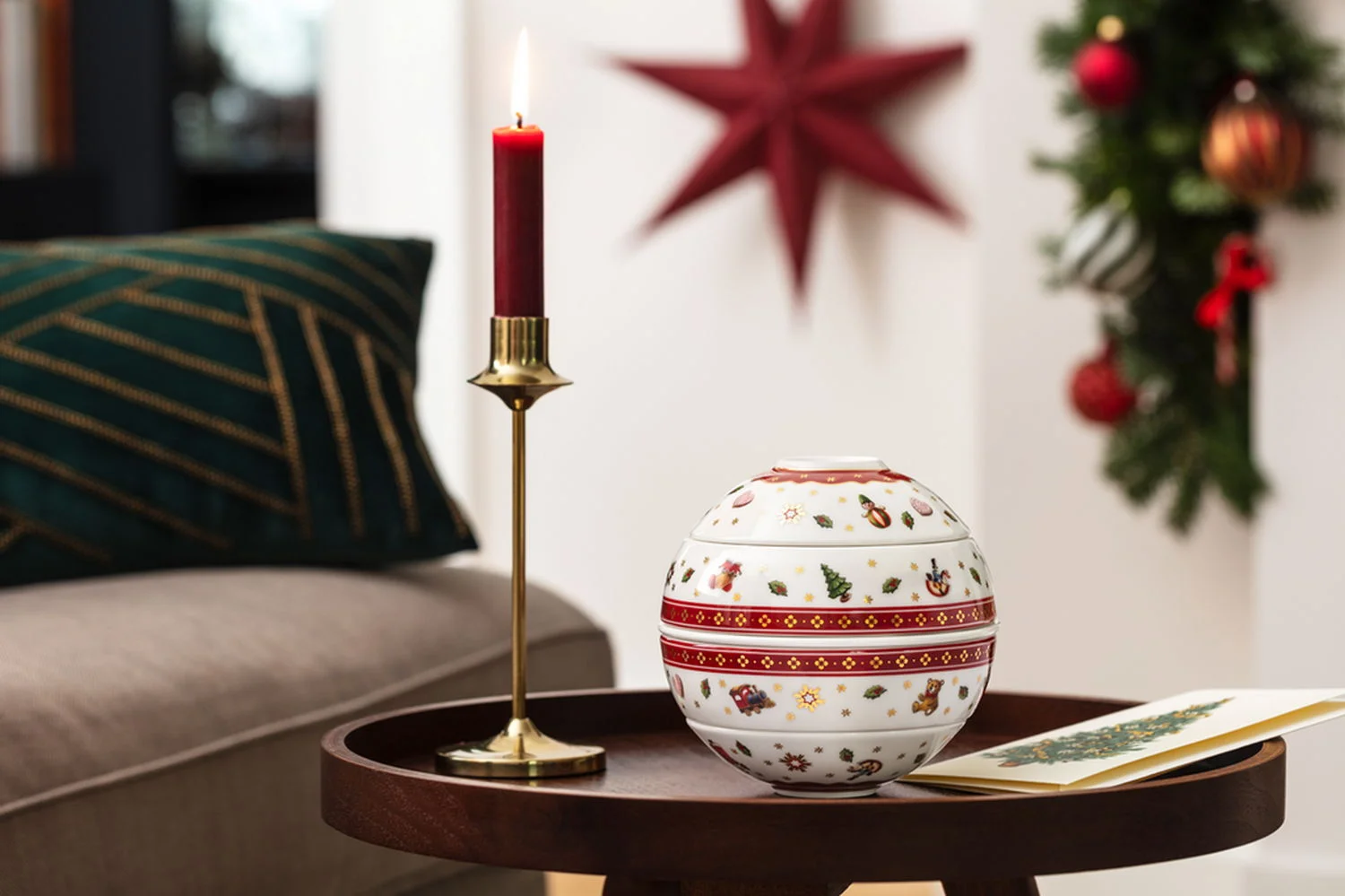 Novinkou roku 2024 je ikonická jedálenská súprava prémiového porcelánu a dizajnový prvok interiéru zároveň – La petite Boule nemeckej značky Villeroy & Boch, tentoraz v menšom prevedení s priemerom 14 cm a krásnom ručne zdobenom vianočnom prevedení, ktoré ladí s kolekciou porcelánu Toy´s Delight.