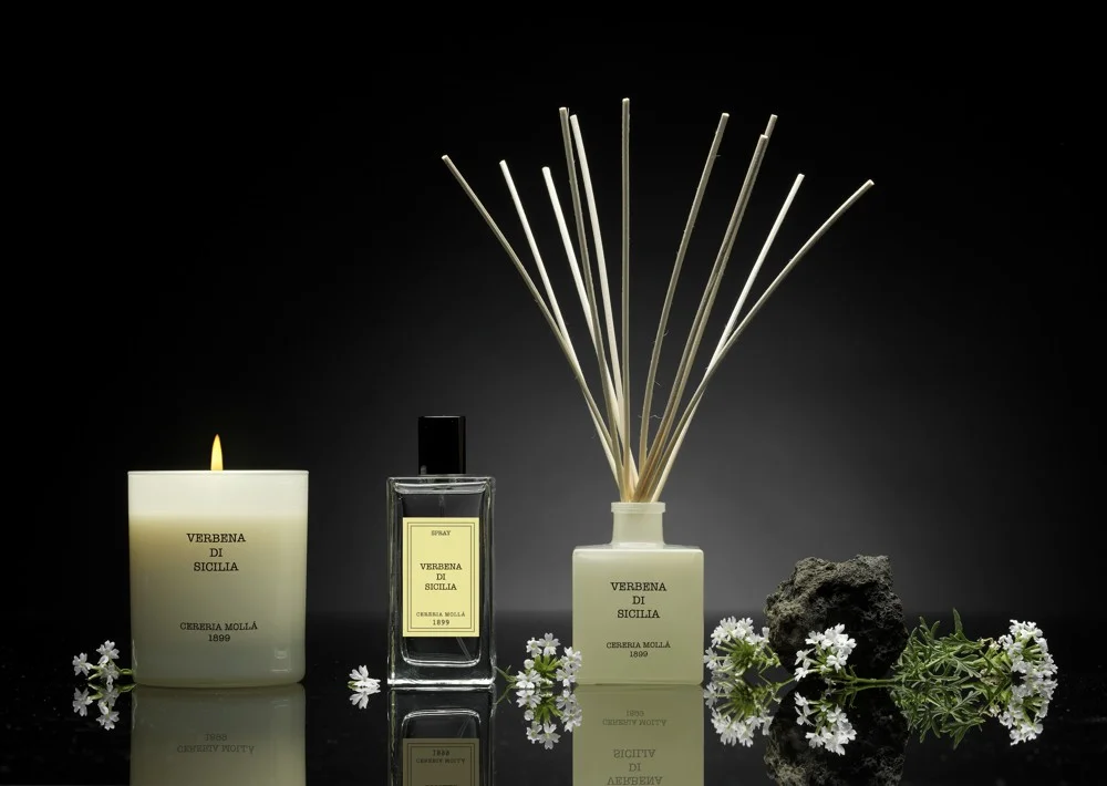 Bytová vôňa v spreji, pomocou ktorej si v okamihu prevoniate svoj domov vôňou sicílskeho slnka. Intenzitu si sami regulujete počtom strieknutí. Absorbuje pachy a účinkuje okamžite. Originálna aróma Verbena di Sicilia pochádza z dielne španielskej rodinnej manufaktúry Cereria Mollá.