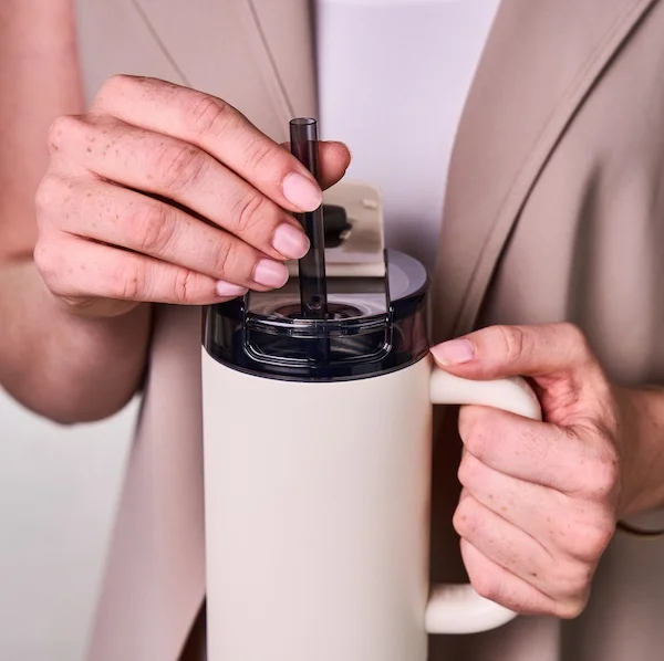 Môžete piť priamo z hrdla alebo použiť slamku, ktorú je možné jednoducho vložiť do termohrnčeka, aby vám neprekážala.