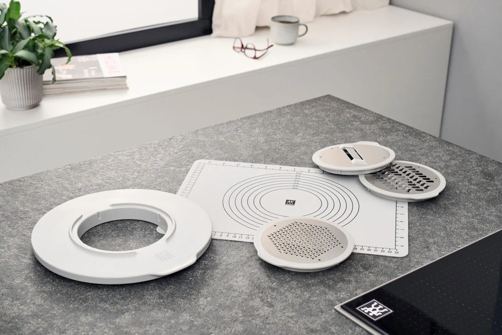 Rozšírte možnosti svojich vákuovacích mís Fresh & Save Zwilling s praktickou súpravou príslušenstva, ktorá obsahuje tri výmenné strúhadlové nadstavce Z-Cut, flexibilné veko proti striekaniu a protišmykovú silikónovú podložku. Príslušenstvo umožňuje efektívnu prípravu jedál priamo v miskách, čím šetrí čas aj miesto vo vašej kuchyni. Malé nadstavce môžete pomocou veka proti striekaniu používať aj s miskami s priemerom 18 a 24 cm.