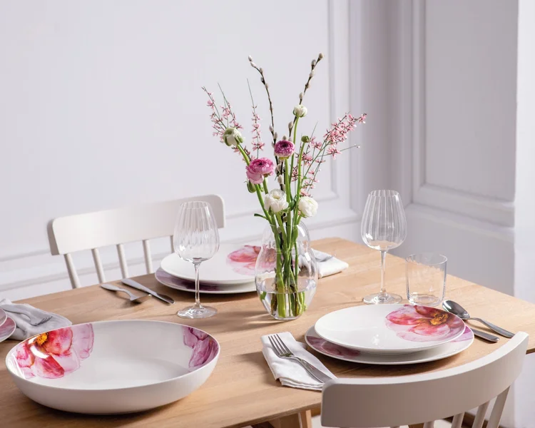 Pokiaľ milujete romantické zátišie ako vystrihnuté z románu Jane Austin, zbystrite. Okázalé kvetinové motívy pripomínajúce štýl Cottage core budú ideálne v jemných pastelových kuchyniach, vintage interiéroch aj starožitných jedálňach, ktoré v sebe skrývajú štipku nostalgie. Či už zvolíte riad Mariefleur alebo Rose Garden od Villeroy & Boch, rozhodne nešliapnete vedľa. Čisto biely porcelán s ružovými okvetnými lístkami sa stane ozdobou každého prestretého stola. Jednotlivé kúsky sa medzi sebou dajú navyše skvele kombinovať.