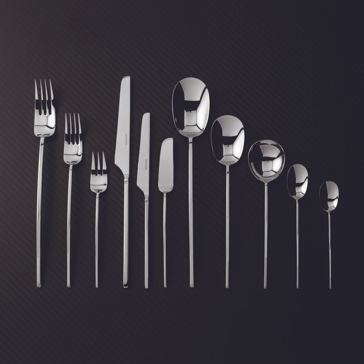 Elegantná 24-dielna sada príborov z kolekcie „100“ vzdáva hold zakladateľovi značky, Giuseppovi Sambonetovi, ktorý by tento rok oslávil 100 rokov. Minimalistické a predĺžené línie v sebe nesú nadčasovosť a sofistikovanosť – ideálne na každodenné aj slávnostné stolovanie. Precízne spracovanie, kvalitné materiály a čistý dizajn robia z tejto sady výnimočný doplnok každej domácnosti. Príbory sú vhodné do umývačky riadu, odporúča sa však vyhnúť agresívnym čistiacim prostriedkom. Nájdete v našich predajniach a na e-shope.