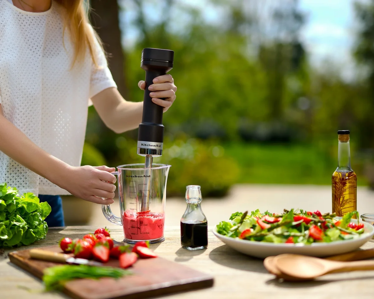 V neďalekom parku, na záhradnej slávnosti či cestou za hrejivými slnečnými lúčmi. Variť nemusíte len v kuchyni, aj keď aj tam pomocou bezdrôtových pomocníkov budete mať na linke naraz tak nejako viac upratané... Vďaka "bezdrôtom" si svoj obľúbený pokrm pripravíte pokojne aj v divokej prírode alebo v obytnom voze. Tento fakt však nie je jedinou výhodou spotrebičov novej rady Cordless GO. Títo pomocníci sú totiž dokonale kompatibilní medzi sebou, výkonnosťou a výdržou úspešne konkurujú klasickým zariadeniam s káblom a okrem toho vás možno upútajú aj zaujímavým designom. Veď presvedčte sa sami, že výhodou bezdrôtových spotrebičov KitchenAid Cordless rady GO nie je len neobmedzená mobilita a skladnosť.