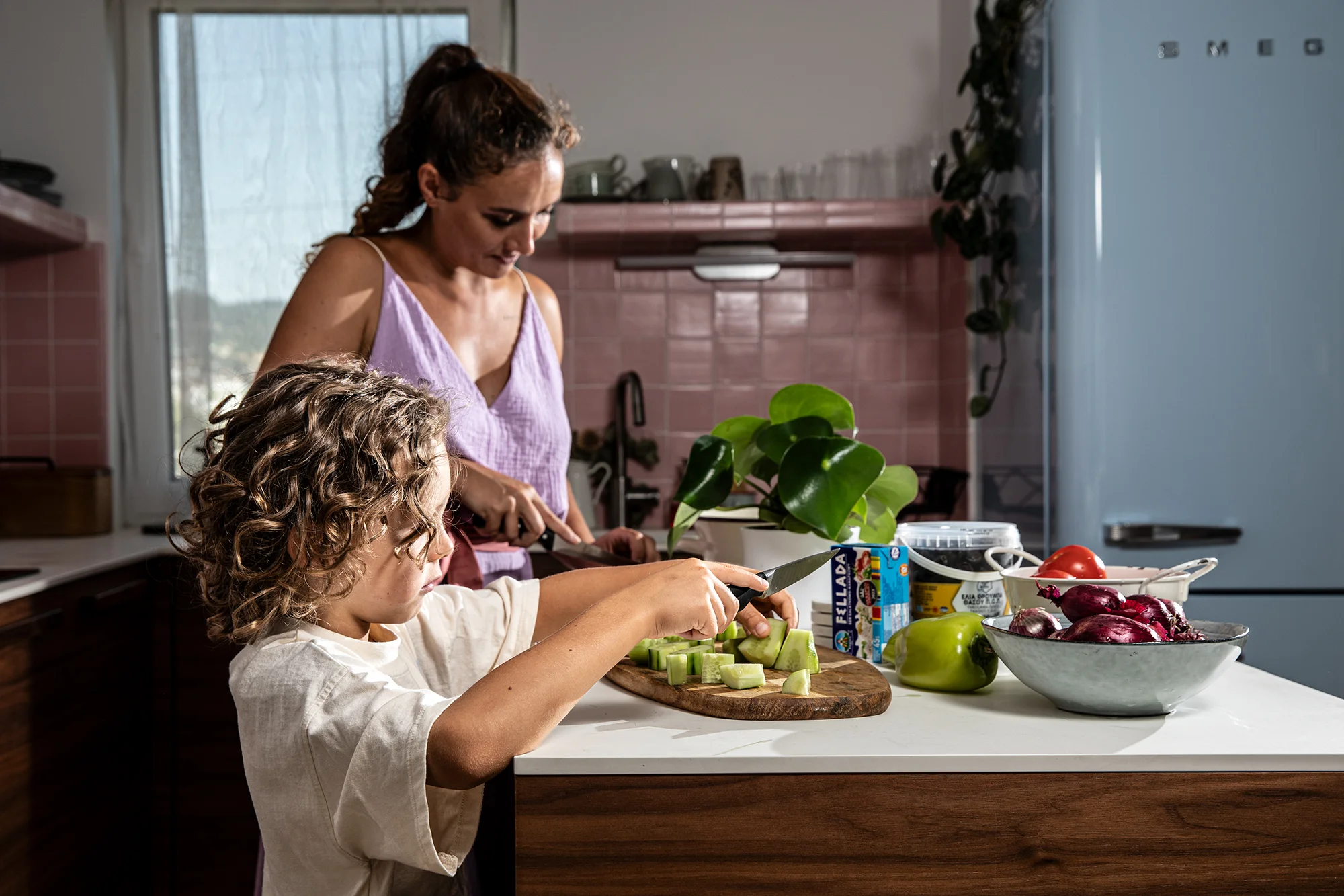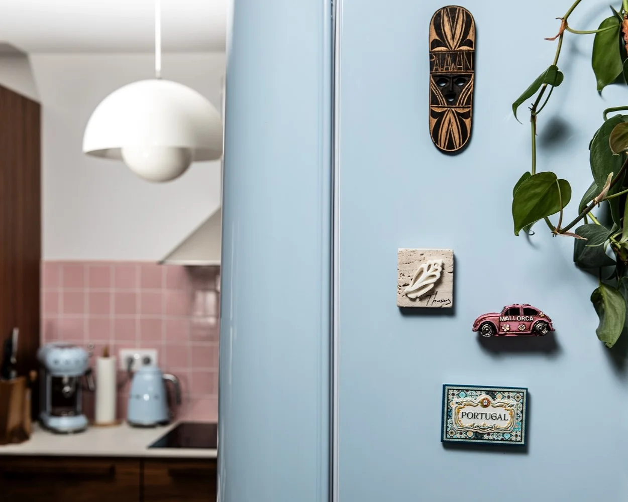 Milujem naše kachličky nakoľko nám ich ručne vyrobil kamarát, ktorý sa tomu venuje. A ešte nedám dopustiť na moju modrú vysnívanú chladničku.