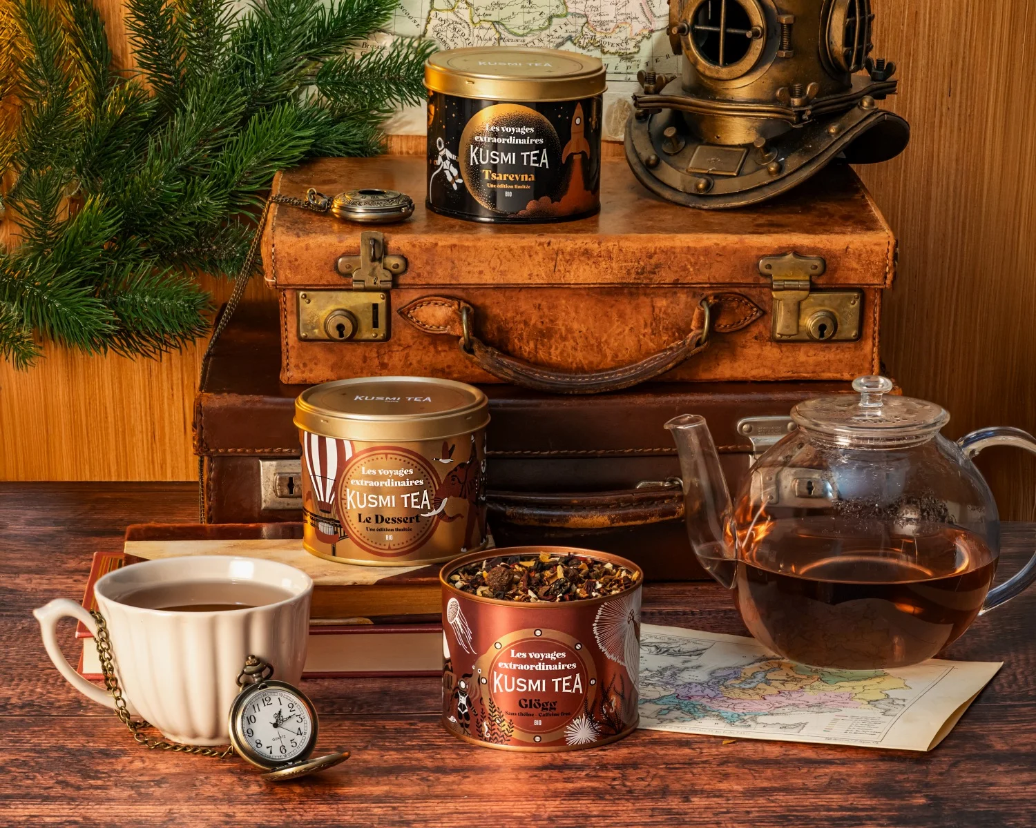 Uvnitř sa skrýva poklad – 48 bio čajov v ôsmich lahodných receptúrach z rôznych kútov planéty, vrátane dvoch najnovších zmesí Kusmi Tea: Rituel Mémoire a Le Dessert, ideálnych spoločníkov pre nové dobrodružstvá.