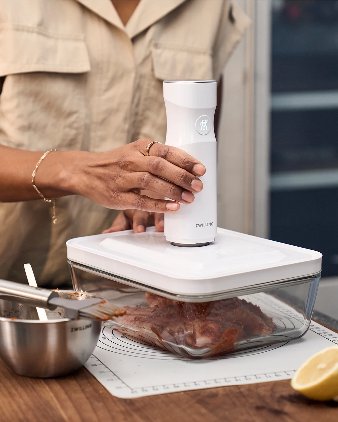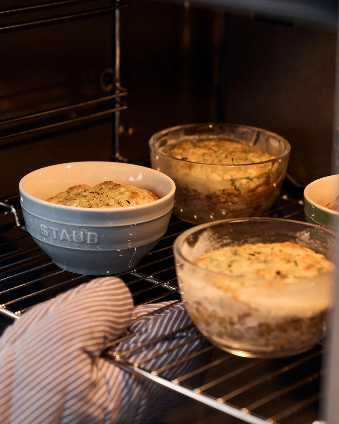 Náš tip: použite sklenené misky zo série ZWILLING FRESH & SAVE s priemerom 12 cm a po vychladnutí ich môžete zavákuovať a uložiť do chladničky. Jednoducho si tak odložíte porcie na ďalšie dni. Skvele tak zužitkujete tradičný letný prebytok cukiet.