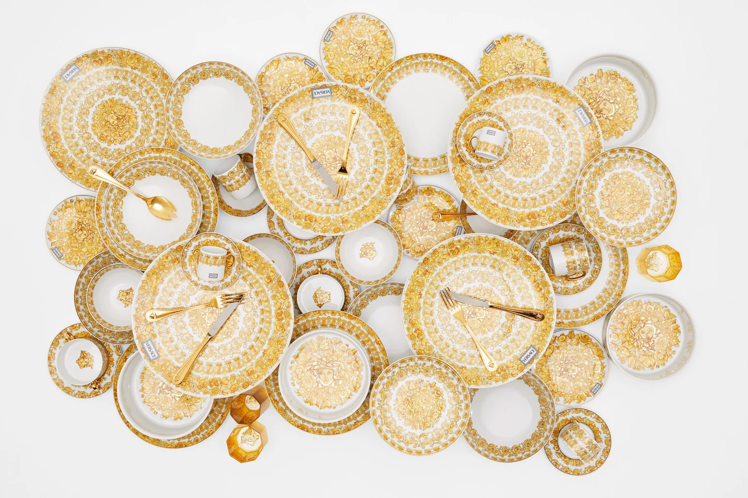 Ďalší slávny návrhár žiarivého sveta haute couture, Gianni Versace, spojil svoje meno so špičkovou nemeckou porcelánkou Rosenthal a svetlo sveta tak mohla uzrieť opulentná a zlatom hýriaca kolekiae Medusa Rhapsody. Inšpirovaná vzormi na slávnych, dnes už ikonických látkach, pôsobí prekvapivo moderne a sviežo, aj napriek tomu, že jej ústredným motívom sú barokové kvety a Versace logo 90-tych rokov. Ak by snúbenci boli kulinárski nadšenci, tak veľmi žiadaným, luxusným a pritom zároveň vysoko praktickým darčekom môže byť aj ikonický robot KitchenAid Artisan v jemne snovej, perlovo-bielej farbe.