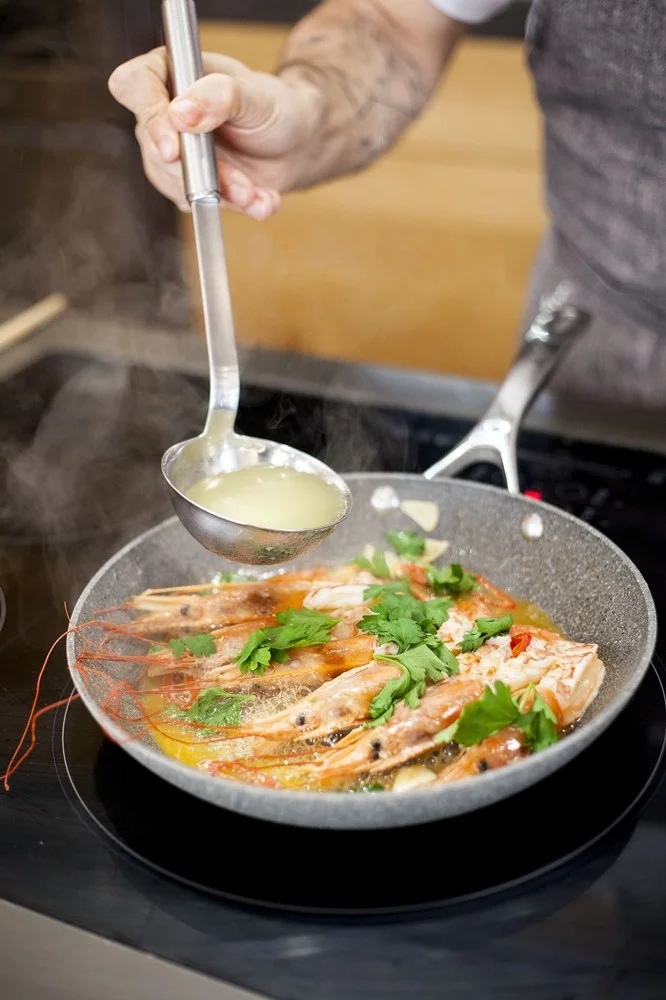 KREVETY S CHILLI, PETRŽLENOVOU VŇAŤOU, CESNAKOM A VÍNOM VERMENTINO