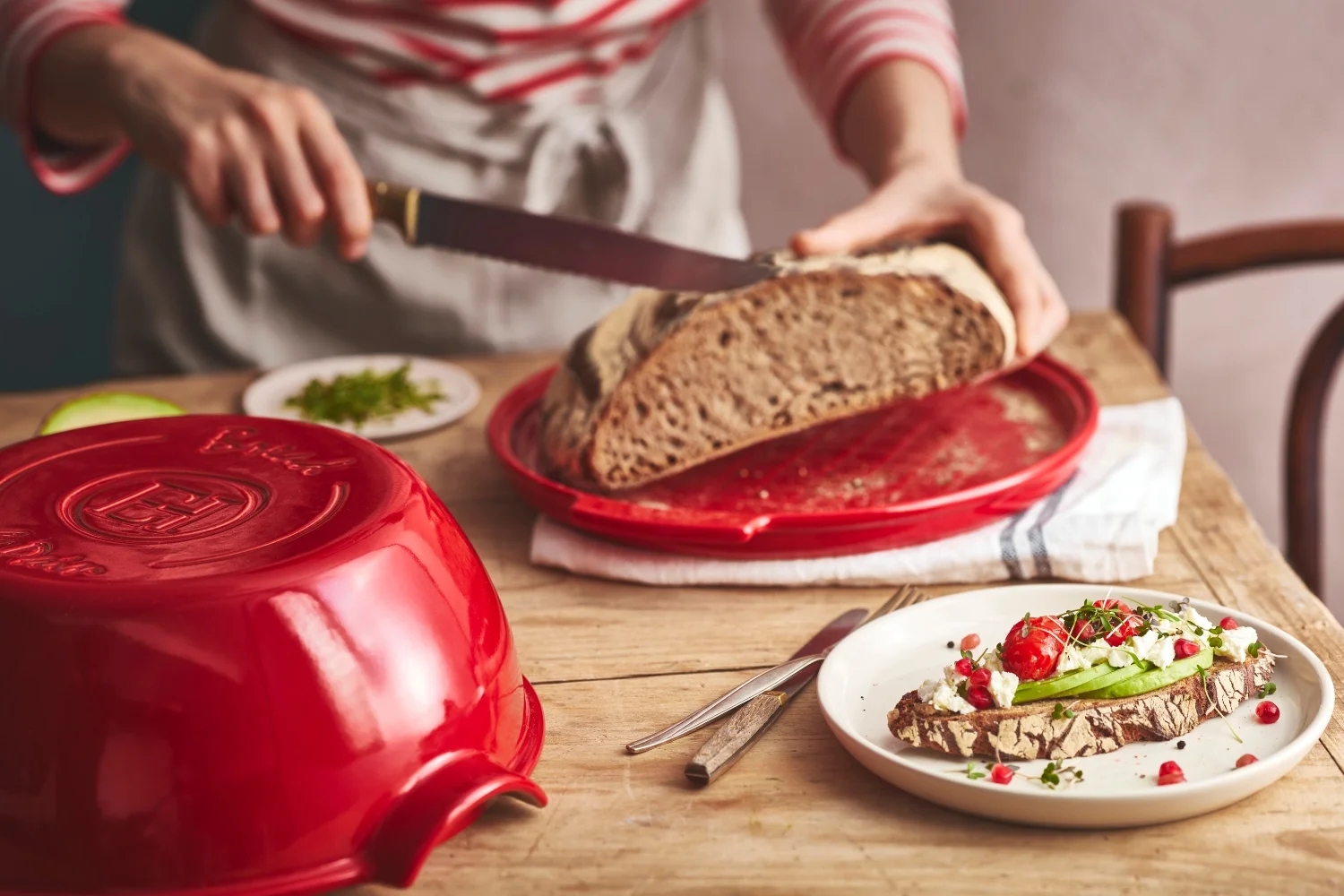 Keramické formy a zapekacie misy Emile Henry navyše krásne vyzerajú aj na stole. Bez váhania tak môžete servírovať priamo z rúry, či už ide o domáci chlieb s chrumkavou kôrkou alebo vláčny koláč ku káve. Pečenie s nimi nie je žiadny stres s časom, ale pokojný proces, ktorý má štýl aj skvelý výsledok. Využijete ich aj v studenej kuchyni a môžete ich aj s obsahom vložiť do mrazničky. Spolu s ďalšími kuchynskými a servírovacími doplnkami z ponuky Emile Henry dotvoríte zaujímavé farebné detaily.
