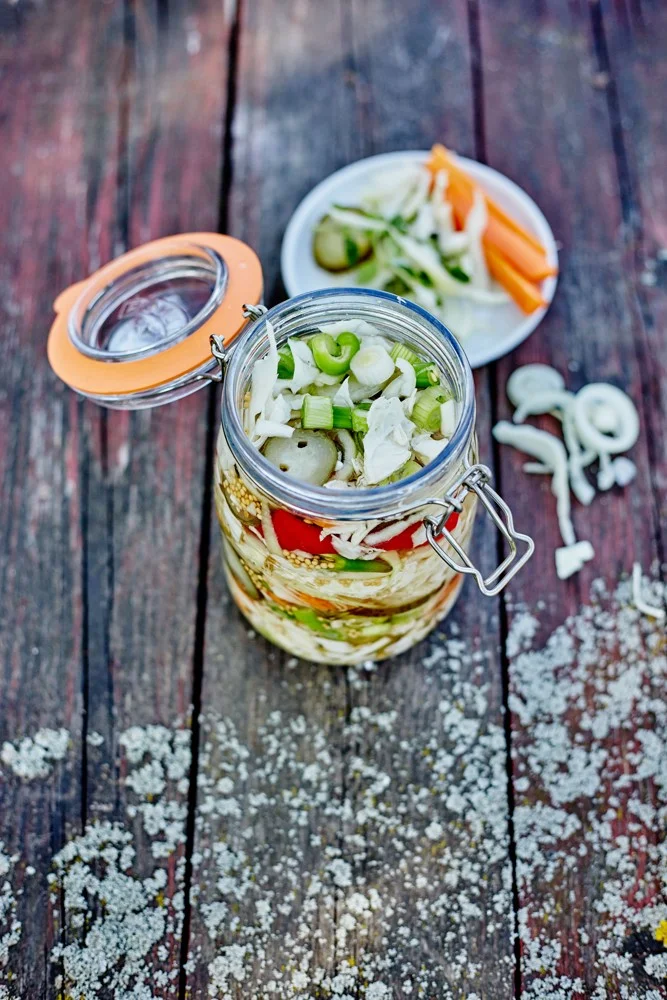 Skúste si pripraviť klasické britské pickles, ale modernejšie. Nakladaná kvasená zelenina príde vhod ako chuťovka ku grilovanému mäsu, hodí sa k hovädziemu mäsu alebo k fish & chips. Podľa nášho tipu pripravenej kimchi sa dobre „kamaráti“ s opečenou grilovacou klobáskou, skvele sadne k dusenému hovädziemu, alebo k vyprážanej rybi čke. Oživí vaše obľúbené pokrmy pikantnou kyslastou chuťou a svojimi sviežimi farbami.