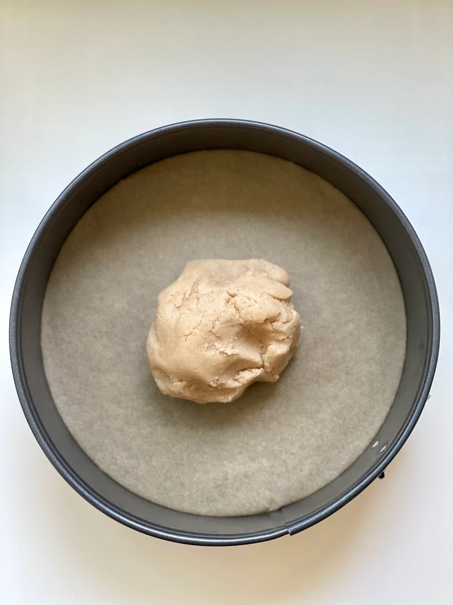 2. To natlačte do formy s priemerom 22–24 cm, ktorú ste vopred vyložili papierom na pečenie.