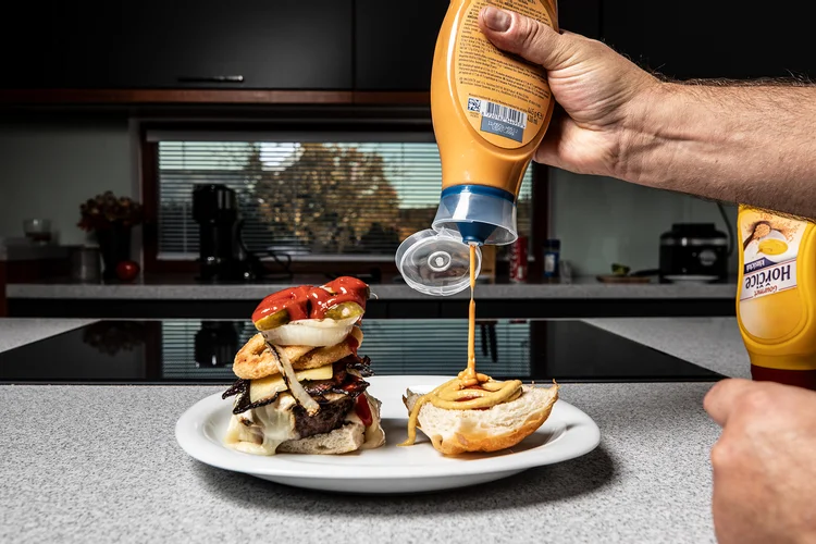 - Omáčky podľa chuti — v mojom prípade majonéza, horčica a burgerová omáčka
