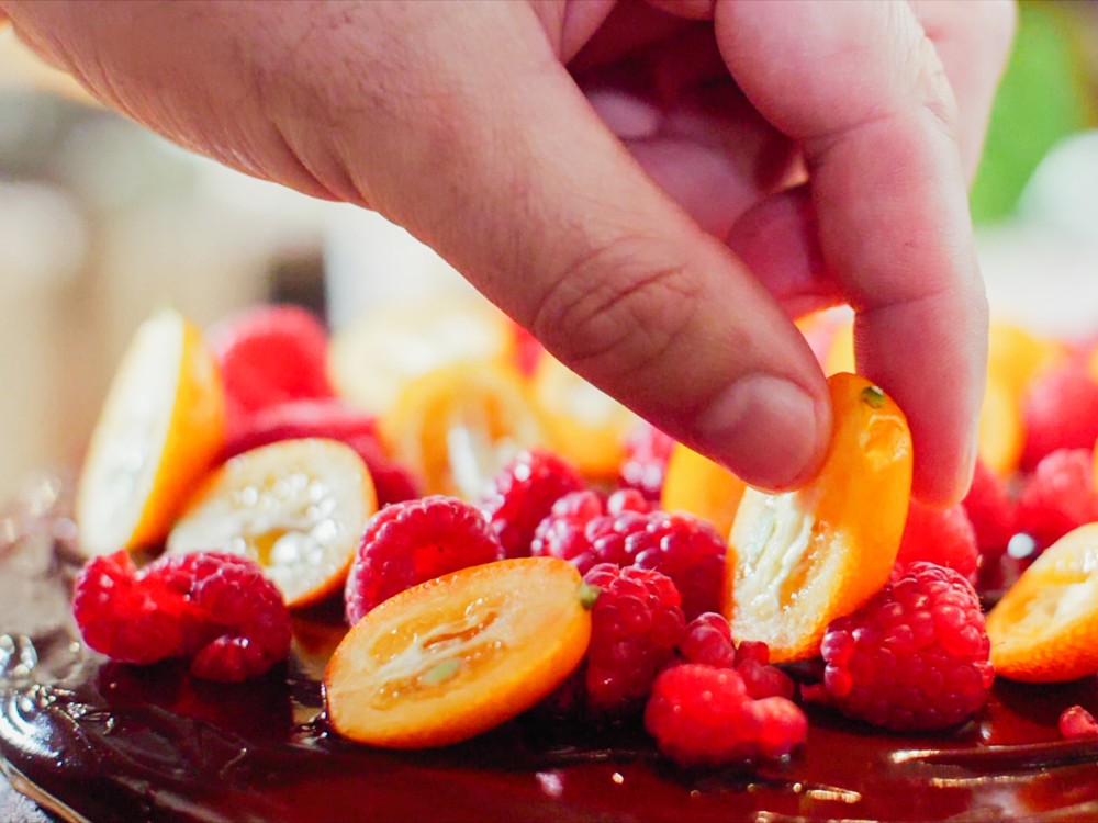 čerstvé kumquat a maliny
